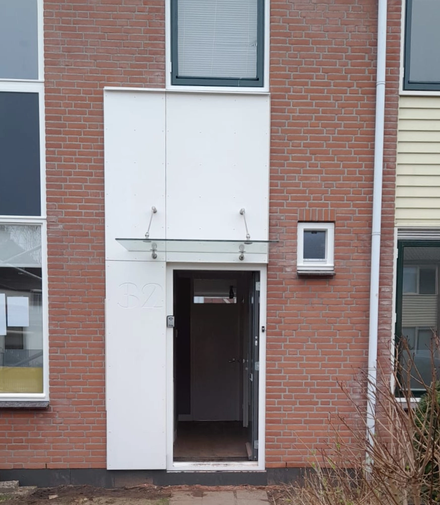 - Transparantie: Nieuwe glazen luifels boven de entrees voor een lichte, moderne uitstraling.